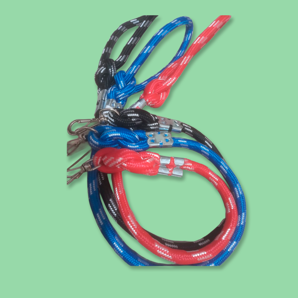 O modelo com nó proporciona melhor pegada e mais controle durante o passeio, além de reforçar a estrutura da guia. É prática, resistente à umidade e de fácil limpeza, sendo perfeita para uso diário.